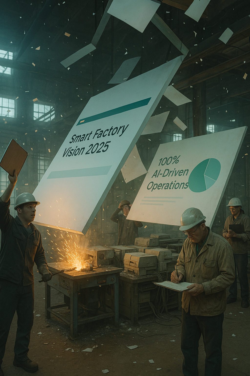 In the glossy decks shown at board meetings, your factory hums with smart sensors, predictive maintenance, and seamless human machine collaboration. Every process is optimized. Every worker wears connected gear. Every machine speaks to the cloud. But step onto the actual factory floor and you’ll find a different story. Dusty terminals, Excel sheets printed and pinned to walls, outdated machinery held together with cable ties, and Wi-Fi zones that end at the coffee machine. The digital transformation of industry has become a narrative success and an operational illusion.